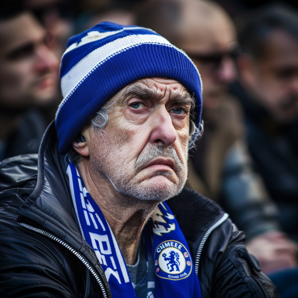 AI-billedet rammer følelsen hos den typiske Chelsea-fan: Skuffelse over midterplaceringen og nederlaget i Carabao Cup-finalen mod Liverpool.