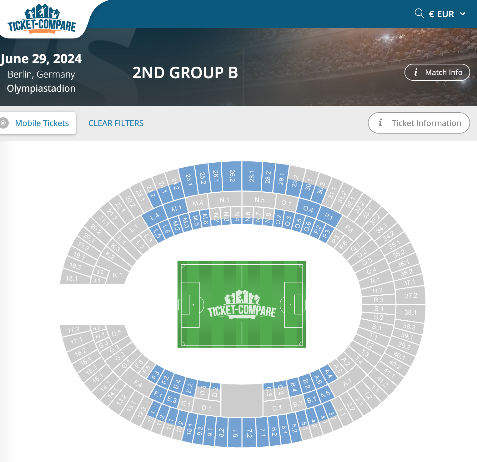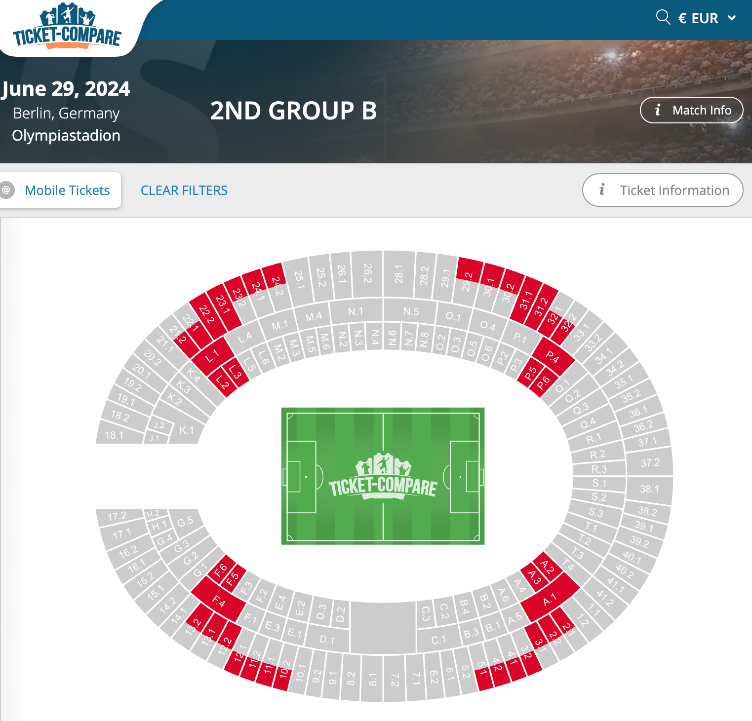 På det sekundære markedet vil prisene naturligvis være høyere. En uke inn i turneringen var dette de rimeligste billettene til kvartfinalen i Berlin 29. juni:
